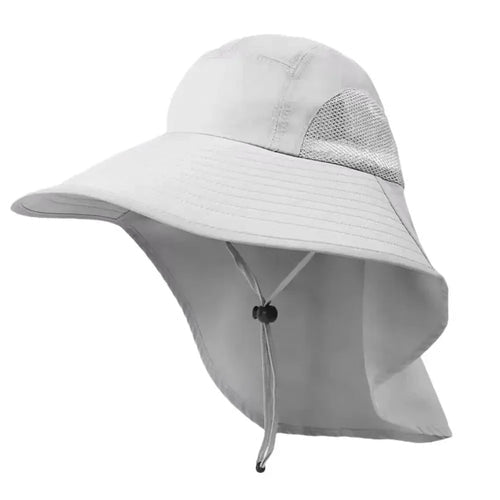 Ideal para dias intensos de calor, o Chapéu Unissex de Sol com Aba Larga e Protetor de Pescoço Ajustável Ferrazi oferece proteção eficiente contra os raios solares, cobrindo rosto, orelhas e pescoço com conforto e segurança.